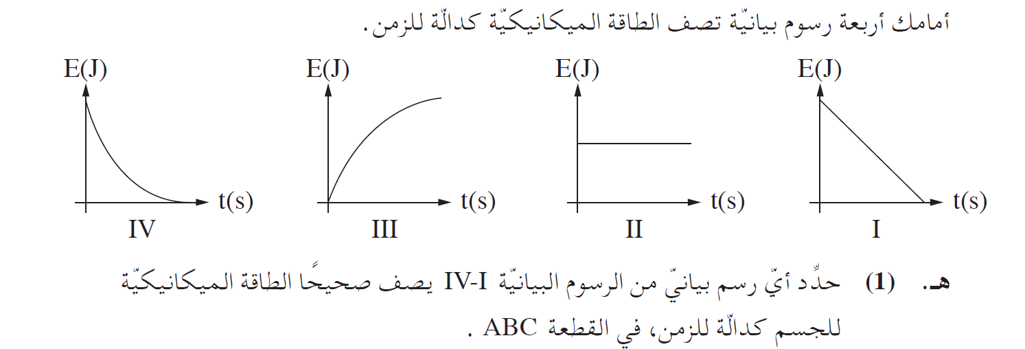 بالقطعة ABC فقط قوة الجاذبية تبذل شغل , يتم حفظ الطاقة الميكانيكية. لذلك فإن الرسم البياني الصحيح هو الرسم البياني 2.