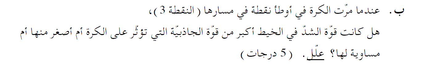 2. يمكنك كتابة معادلة الحركة الدائرية للكرة عندما تمر عبر النقطة 3 ، وفهم أي القوى أكبر منها: