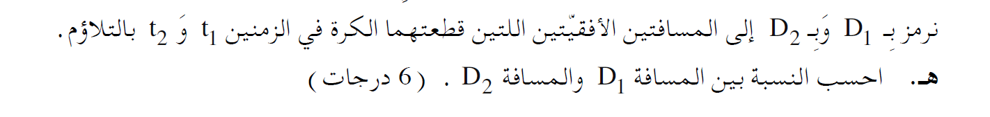 نعبر عن كل من المسافتين D1 و D2 ، باستخدام مبدأ استقلالية الحركات. وإيجاد النسبة بين هاتين المسافتين.