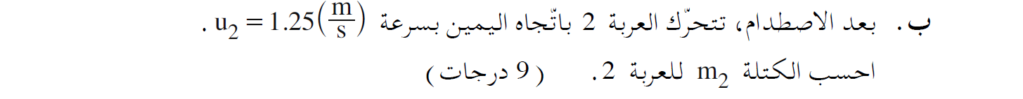 لم يُكتب في السؤال ما هو اتجاه محور الحركة، ولكن نظرًا لأن الجسم 1 يتحرك إلى اليمين وسرعته موجبة ، فإن اتجاه محور الحركة هو لجهة اليمين.