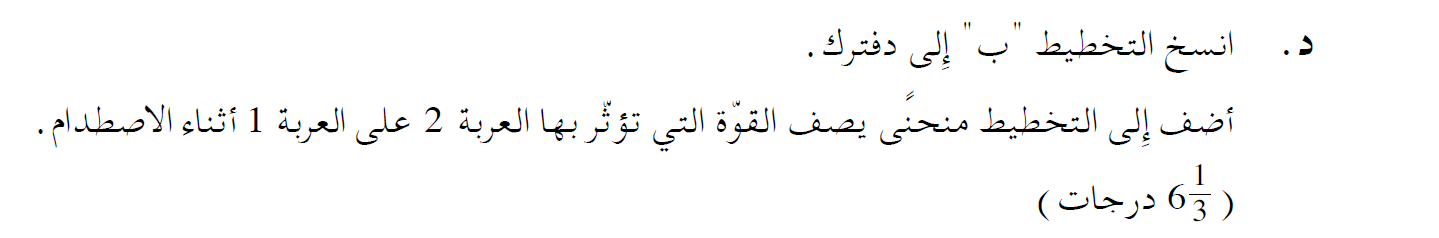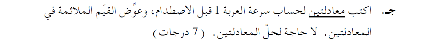 قيمة كمية الحركة المحصّلة للسيارتين قبل الاصطدام تساوي بالفعل قيمة كمية الحركة