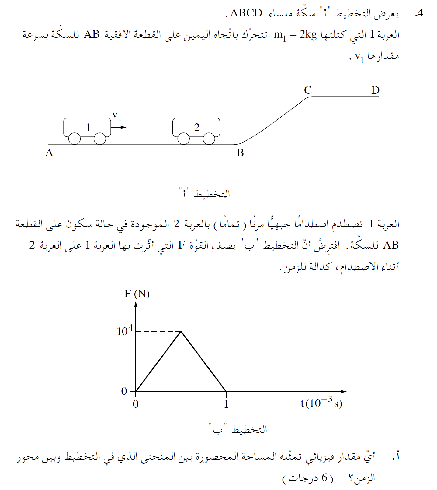 نحسب مقدار كمية الدفع الذي تشغّله السيارة 1 على السيارة 2 من الرسم البياني:
