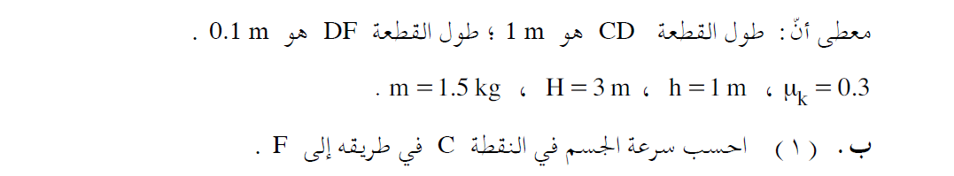 في السؤال لإيجاد السرعة في النقطة C عندما يتحرك الجسم نحو النقطة F بالذات. لأنه إذا تحرك في الاتجاه المعاكس فسيمر من خلال مقطع الحركة الغير