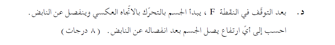 في النقطة D- الجسم لديه سرعة، ارتفاع النقطة لا يساوي صفر ، النابض رخو.