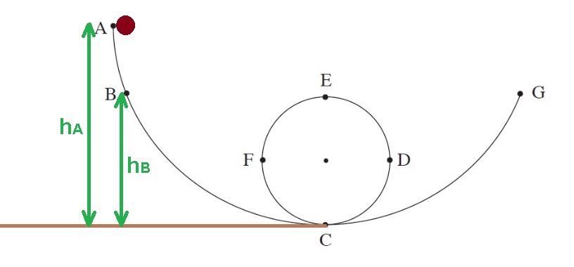 2. إن الشرط لجسم متحرر من حالة السكون حتى يكمل حركته على المسار الدائري هو أن يكون الارتفاع الأولي 2.5 مرة أكبر من نصف قطر المسار. بمساعدة هذ الشرط، من الممكن أن تعرف سلفا أن الجسم لن يكون قادرًا على إكمال حركته.