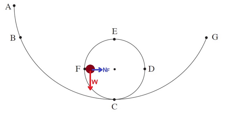 مُعطى أن المسار أملس، لا توجد قوة احتكاك، هناك قوتان فقط تؤثران على الجسم، القوة العمودية وقوة الجاذبية. تعمل القوة العمودية بشكل عمودي على الحركة من خلال تعريف الشغل فإنها لا تبذل شغل.