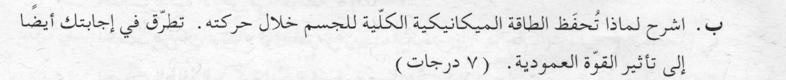 2. يكفي أن تكتب: " تُحفظ الطاقة الميكانيكية لأن قوة الجاذبية فقط هي التي تبذل شغل" .