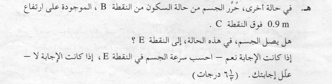 لا يتناول هذا القسم النقطتين E و C. ولكن في حركة الجسم من النقطة C إلى النقطة E. لذلك يجب شرح ذلك بشكل عام.