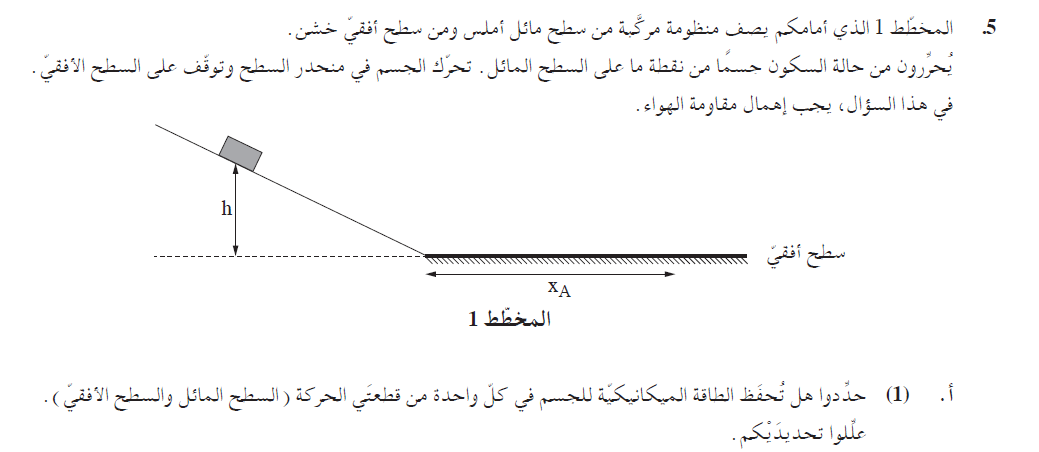 على السطح المائل يتحقق حفظ الطاقة الميكانيكية.