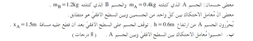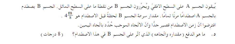 قبل الاصطدام كان الجسم A في حالة سكون: