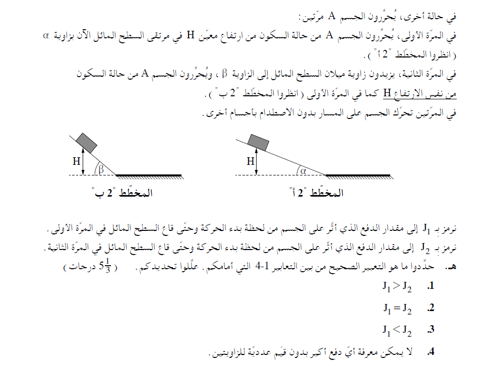 2. لأنه في كل مرة تختلف زاوية ميل السطح المائل، يختلف اتجاه متجه سرعة الجسم في أسفل السطح في كل مرة.