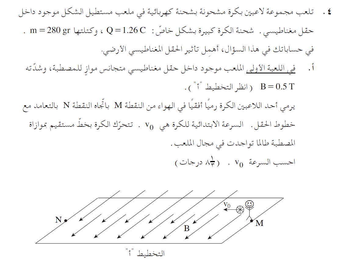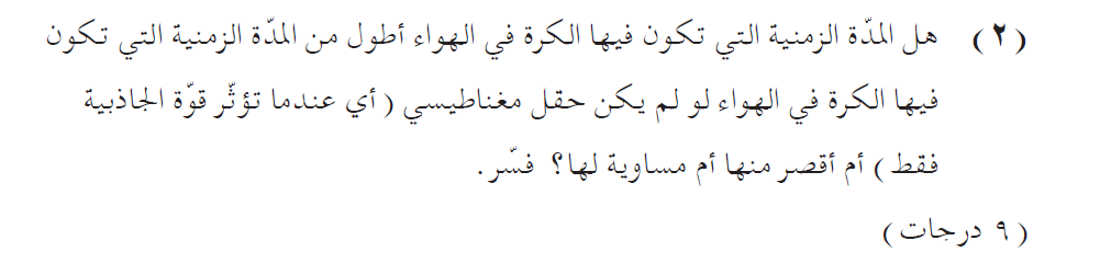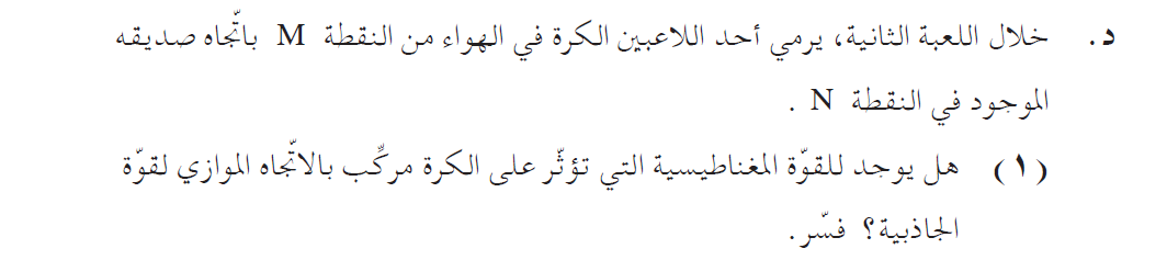 2. لمساعدة الطالب في الإجابة على السؤال، تناول البند السابق حقيقة أن القوة المغناطيسية ليس لها مركّب في الاتجاه العمودي.