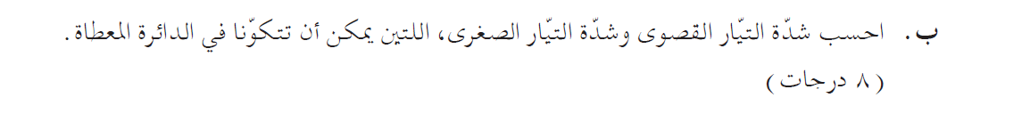 إيجاد مقاومة السلك وحساب قيمة التيار عندما تكون المقاومة المحصّلة في قيمتها القصوى وعندما تكون في قيمتها الدنيا.