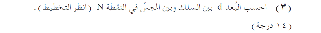 وبالتالي، فإن البعد بين السلك والنقطة N هي 5.3 cm.