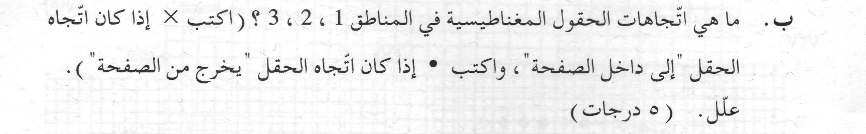 כיוון השדה המגנטי באזור 4 הוא החוצה, מכאן שכיוון השדה המגנטי באזור 3 הוא פנימה.