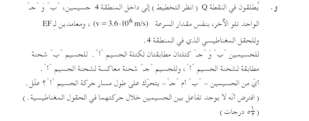 لكي يتحرك الجسيم المشحون على طول المسار، يجب أن تكون شحنته موجبة، وبالتالي فإن الجسيم الذي سيتحرك على طول المسار هو الجسيم "ج".