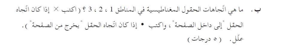 إيجاد اتجاه الحقل المغناطيسي في كل منطقة حسب اتجاه الحقل في المنطقة 4 وحسب شكل المسار.