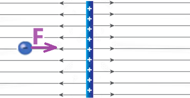 בסעיפים קודמים הלוח היה ממוקם משמאל לגוף הטעון ,בהתאם לכיוון השדה הנוצר מהלוח , ולסימן מטען הגוף הטעון , הלוח הפעיל על הגוף כוח חשמלי שכיוונו - שמאלה. כמוראה באיור הבא: