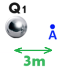נחשב את הפוטנציאל הנוצר על ידי הכדור הטעון בנקודה A, נשתמש בביטוי לחישוב הפוטנציאל בסביבת מטען נקודתי, נתייחס למטען הכדור כאל מטען נקודתי הממוקם במרכז הכדור.