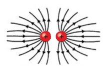 לכן, צפיפות קווי השדה בנקודת האמצע שווה לאפס, קווי השדה מתעקמים כך שהם לא עוברים באמצע המרחק שבין המטענים.