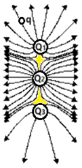 בתרשים קווי השדה ניתן להבחין בשני אזורים בהם עוצמת השדה שווה לאפס.