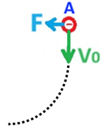 תנועת הגוף דומה לתנועתו של גוף הנע בתנועה בליסטית בזריקה אופקית, נתאר בהתאם לכוח החשמלי ולמהירות הזריקה את מסלול תנועת הגוף: