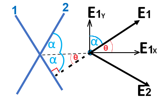מהתרשים הבא ניתן לראות שהזווית α היא הזווית שבין E1Y לבין E1.