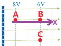 נתייחס למטען בוחן הנע מנקודה A לנקודה B, נתאר את תנועת המטען ביחס לציר שכיוונו ככיוון קווי השדה, כפי שניתן לראות באיור הבא: