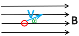האלקטרון נע בכיוון השדה המגנטי, הזווית בין כיוון השדה לכיוון התנועה היא 180 מעלות.