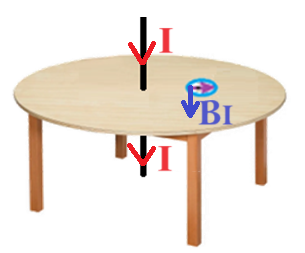 באיור הבא מתואר כיוון הזרם במוליך כלפי מטה, וכיוון השדה המגנטי הנוצר במקום בו נמצא המצפן ,על פני השולחן בניצב לכיוון השדה המגנטי שנוצר מכדור הארץ.