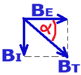נסמן את הרכיב האופקי של השדה המגנטי של כדור הארץ במקום בו נמצא המצפן ב- «math style=¨font-family:Tahoma¨ xmlns=¨http://www.w3.org/1998/Math/MathML¨»«mstyle mathsize=¨20px¨»«mo mathvariant=¨bold¨ mathcolor=¨#0000FF¨»§#160;«/mo»«msub»«mi mathvariant=¨bold¨ mathcolor=¨#0000FF¨»B«/mi»«mi mathvariant=¨bold¨ mathcolor=¨#0000FF¨»E«/mi»«/msub»«/mstyle»«/math»