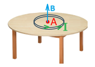 לכן בנקודה A כיוון השדה המגנטי הוא החוצה מהשולחן. כמוראה באיור הבא: