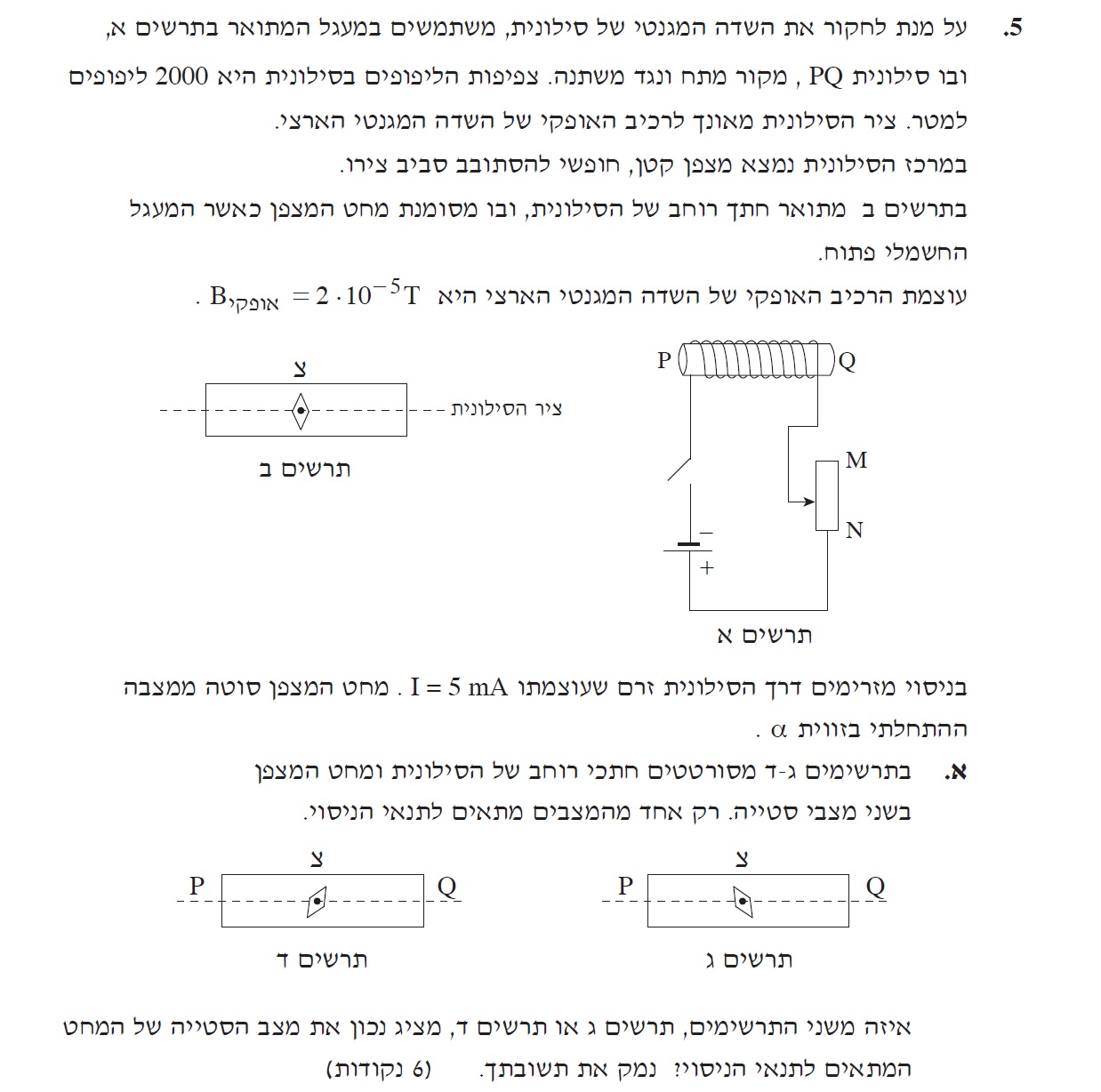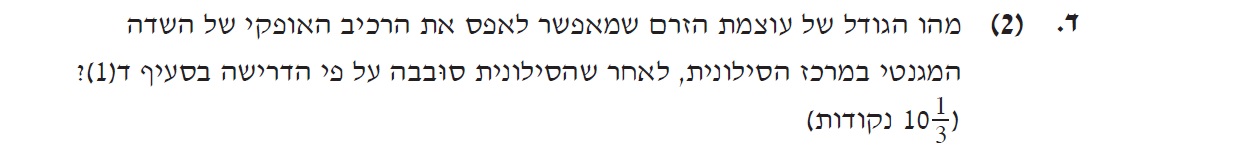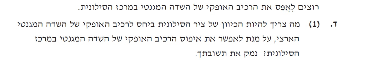 1. כדי לאפס את הרכיב האופקי של השדה המגנטי לא מספיק שציר הסילונית ימוקם בכיוון צפון דרום.