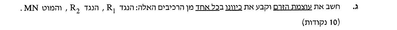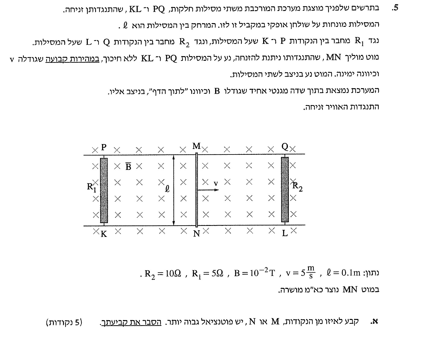 כיוון הזרם בנגד R2 הוא מנקודה Q לנקודה L. כיוון הזרם במוט הוא מהנקודה N לנקודה M.
