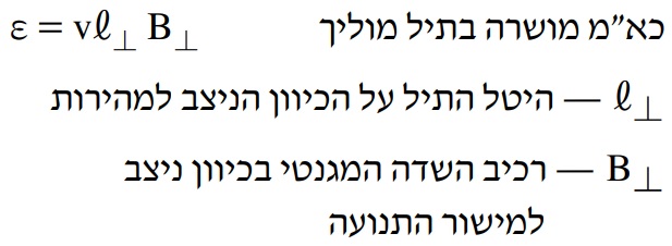 1. בדפי הנוסחאות מופיע ביטוי לכא"מ המושרה במוליך הנע בשדה מגנטי באופן הבא: