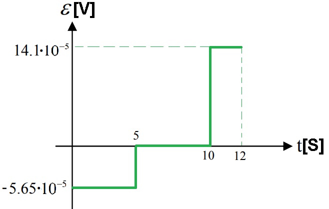 בפרק הזמן השני כאשר «math xmlns=¨http://www.w3.org/1998/Math/MathML¨»«mn mathvariant=¨bold¨ mathcolor=¨#0000FF¨»5«/mn»«mo mathvariant=¨bold¨ mathcolor=¨#0000FF¨»§#60;«/mo»«mi mathvariant=¨bold-italic¨ mathcolor=¨#0000FF¨»t«/mi»«mo mathvariant=¨bold¨ mathcolor=¨#0000FF¨»§#60;«/mo»«mn mathvariant=¨bold¨ mathcolor=¨#0000FF¨»10«/mn»«/math» - אין שינוי בעוצמת השדה המגנטי בתוך הכריכה , אין שינוי בשטף, לכן לא נוצר כא"מ מושרה.