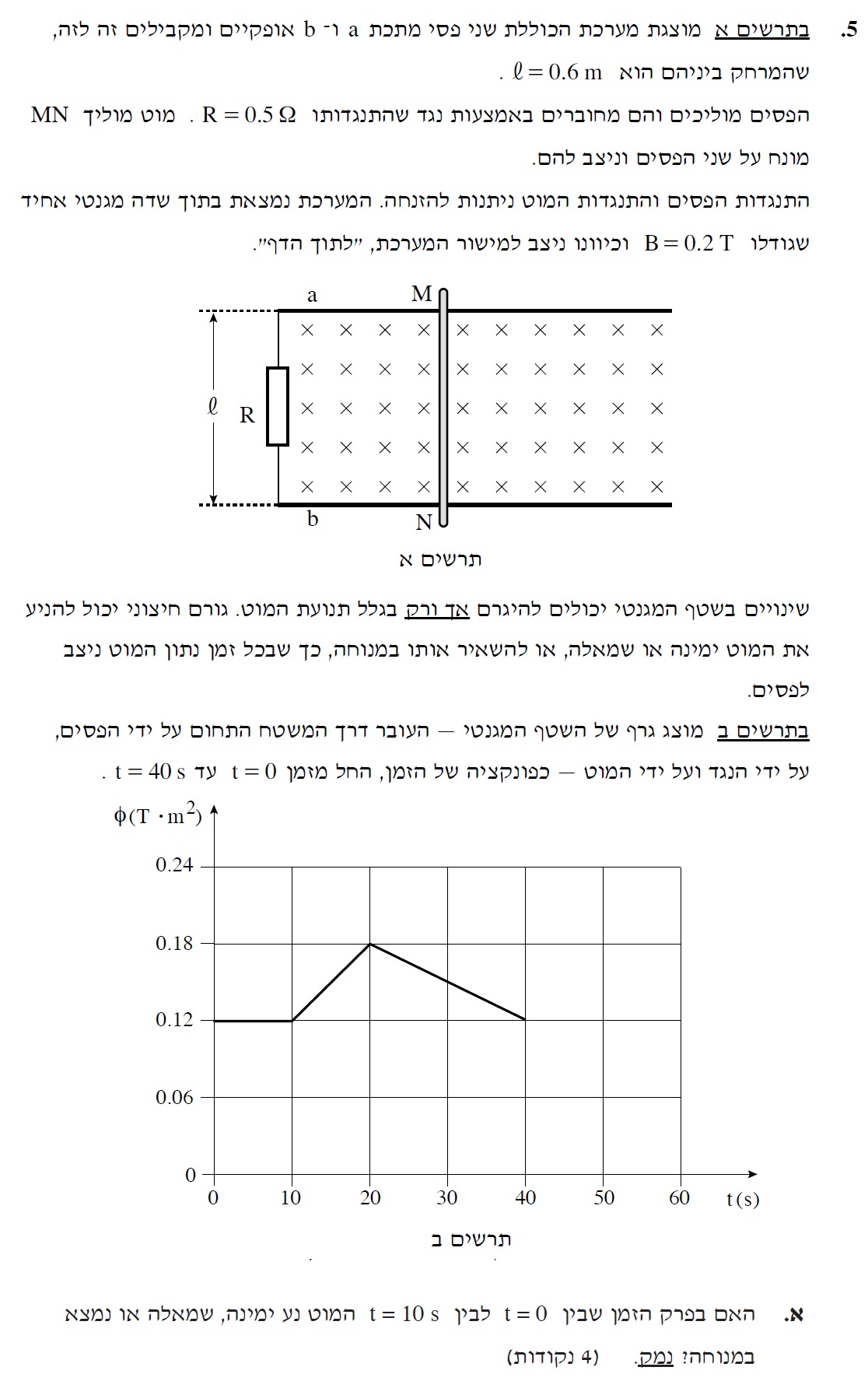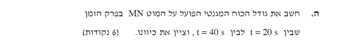 מהגרף ניתן לראות שבעשר השניות הראשונות השטף לא משתנה, לכן בעשר השניות הראשונות המוט לא נע.
