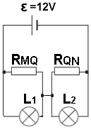 ב- ההתנגדות השקולה של הצד השמאלי RMQ והנורה L1 זהה להתנגדות השקולה של הצד הימני RQN והנורה L2 .