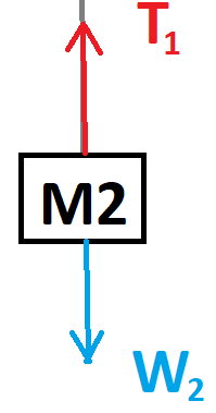 על גוף 2 פועלים שני כוחות: כוח הכובד W2 וכוח המתיחות T1.
