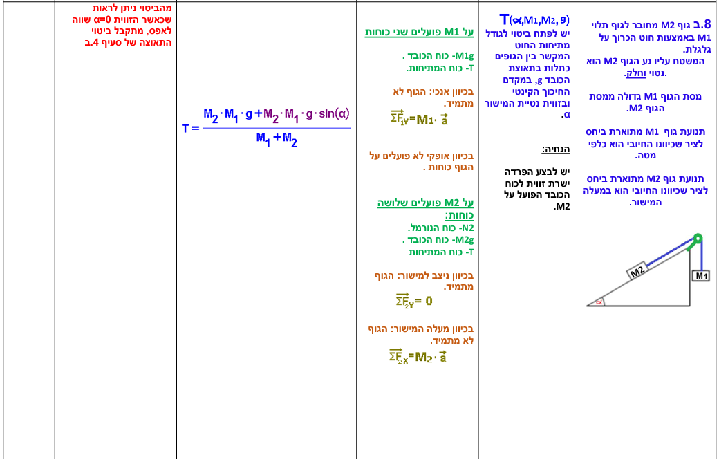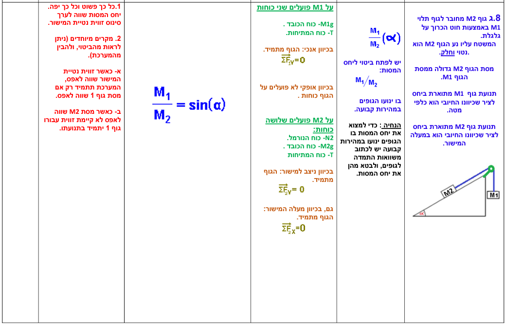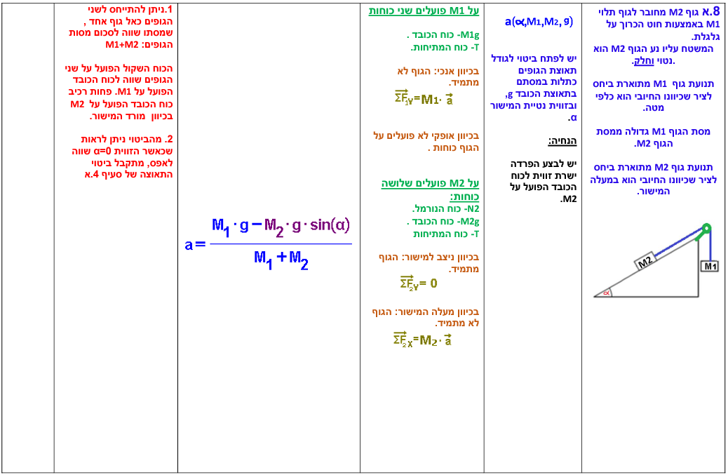 8. גוף תלוי וגוף על מישור משופע חלק