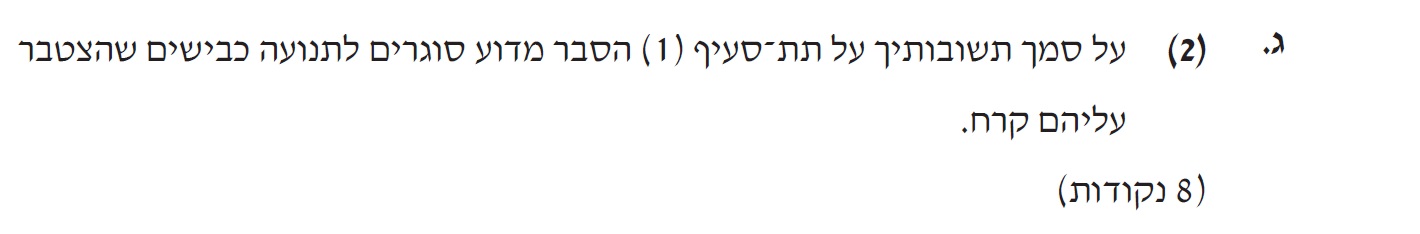 3. סעיף זה נשען על הבנת הדינמיקה בסעיפים הקודמים, הרבה פעמים הסעיף האחרון , הוא מסכם בצורה קצת שונה את כל השאלה.
