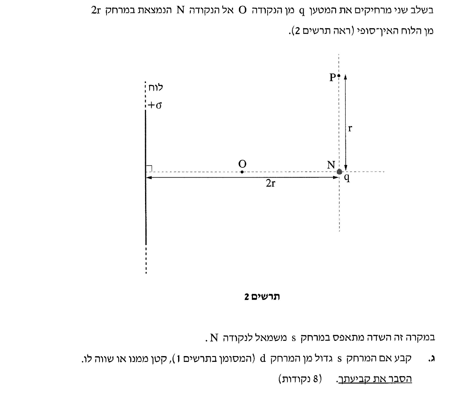 מכיוון שהמטען הנקודתי לא משתנה , המרחק בין הנקודה N לנקודה S שווה למרחק d .