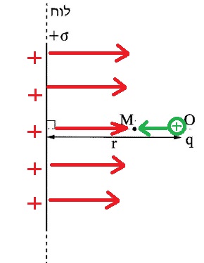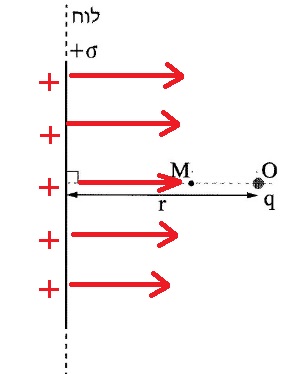הלוח טעון במטען חיובי ,הוא יוצר בנקודה M שדה חשמלי שכיוונו ימינה.