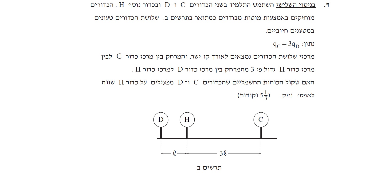 1. נתון בשאלה שהמטען של כדור B הוא שלילי , חשוב לזכור זאת בכתיבת ערך מטען כדור B.