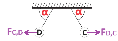 מהחוק השלישי של ניוטון פועלים על הכדורים C ו- D כוחות חשמליים זהים בגודלם, כמוראה באיור הבא: