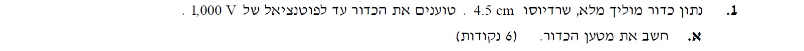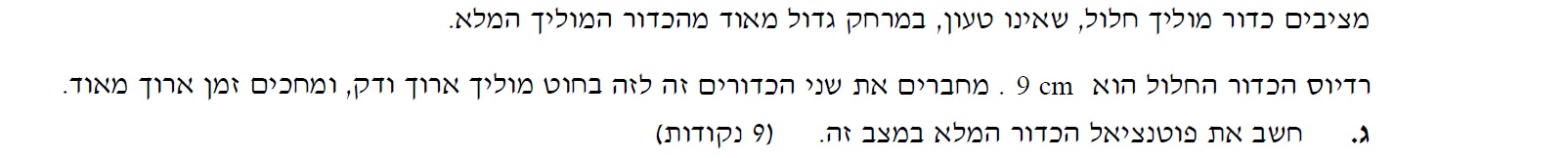 ולאחר מכן לחשב בהתאם למטען הכדור המלא את פוטנציאל הכדור.
