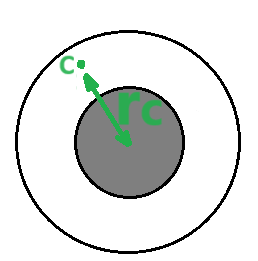 נערוך תרשים המתאר את הכדור המלא בתוך הכדור החלול ואת הנקודה C: