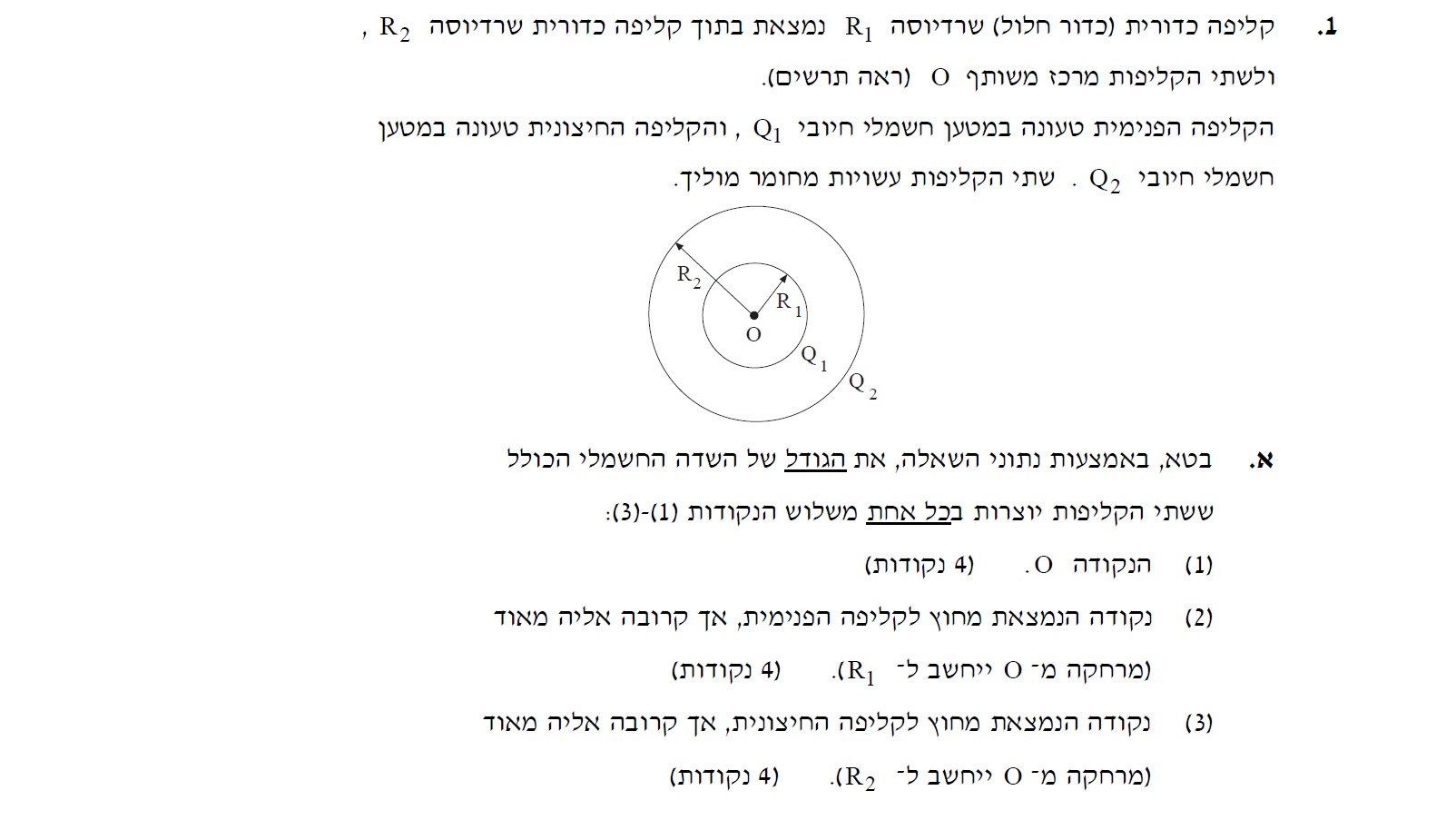 3. בנקודה הנמצאת על פני הקליפה החיצונית נוצר פוטנציאל משתי הקליפות.