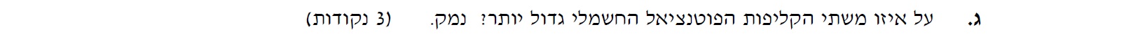 נסמן נקודה זו ב- B ונבטא בעזרת נתוני השאלה את הפוטנציאל בנקודה B.