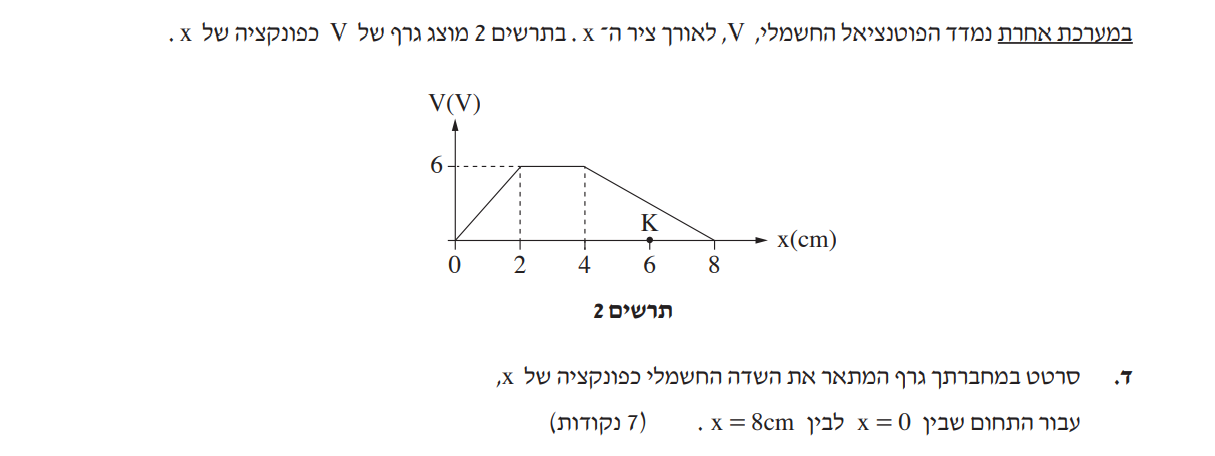 בנקודה K ערך השדה הוא חיובי, לכן כיוון השדה הוא ככיוון הציר.